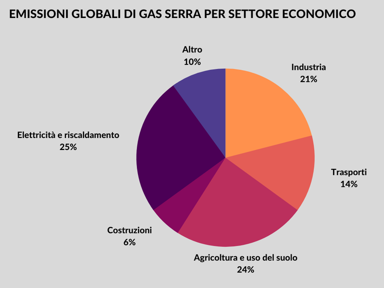Emissioni globali di gas serra suddivise per settore economico (Rielaborazione su dati IPCC 2014)